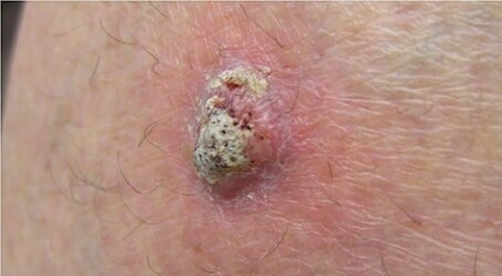 · قرحة جديدة أو منطقة بارزة عن ندبة أو قرحة قديمة